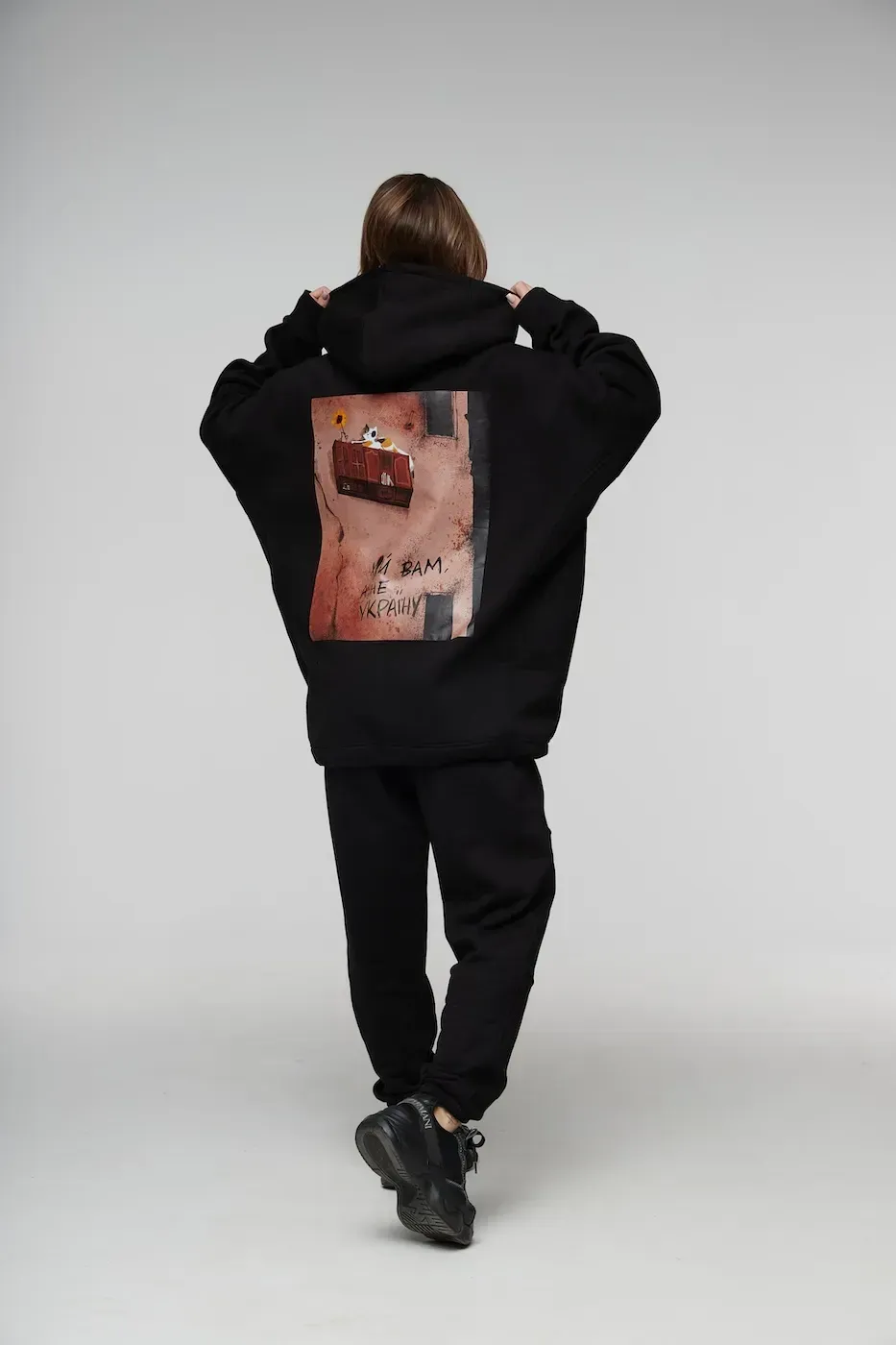 The oversized hoodie with the print. Made from soft, comfortable fabric.